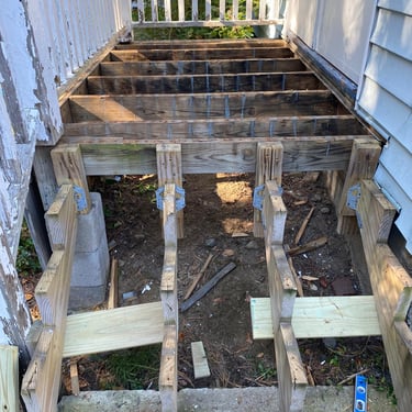 Porch and Stair Restoration: Removing old, damaged wood and replacing it with new, durable materials to restore the porch and stair structures to their original condition.