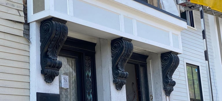 Front Facade and Door Restoration: Comprehensive restoration of front facades and doors, including repairing, repainting, and restoring architectural details to preserve the original character of the building.